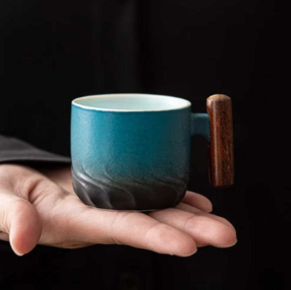 أكواب قهوة سيراميك من المتجر المذهل amazingstore استمتع بتجربة شرب القهوة المميزة مع كوب السيراميك الفاخر بمقبض خشبي، تصميم عتيق وجميل يناسب جميع الأذواق. مثالي للمكتب أو للاستخدام المنزلي، إضافة أنيقة لأي مكان. كوب شاي أو ماء يدوي الصنع يمنحك لحظات من الاسترخاء والرفاهية.