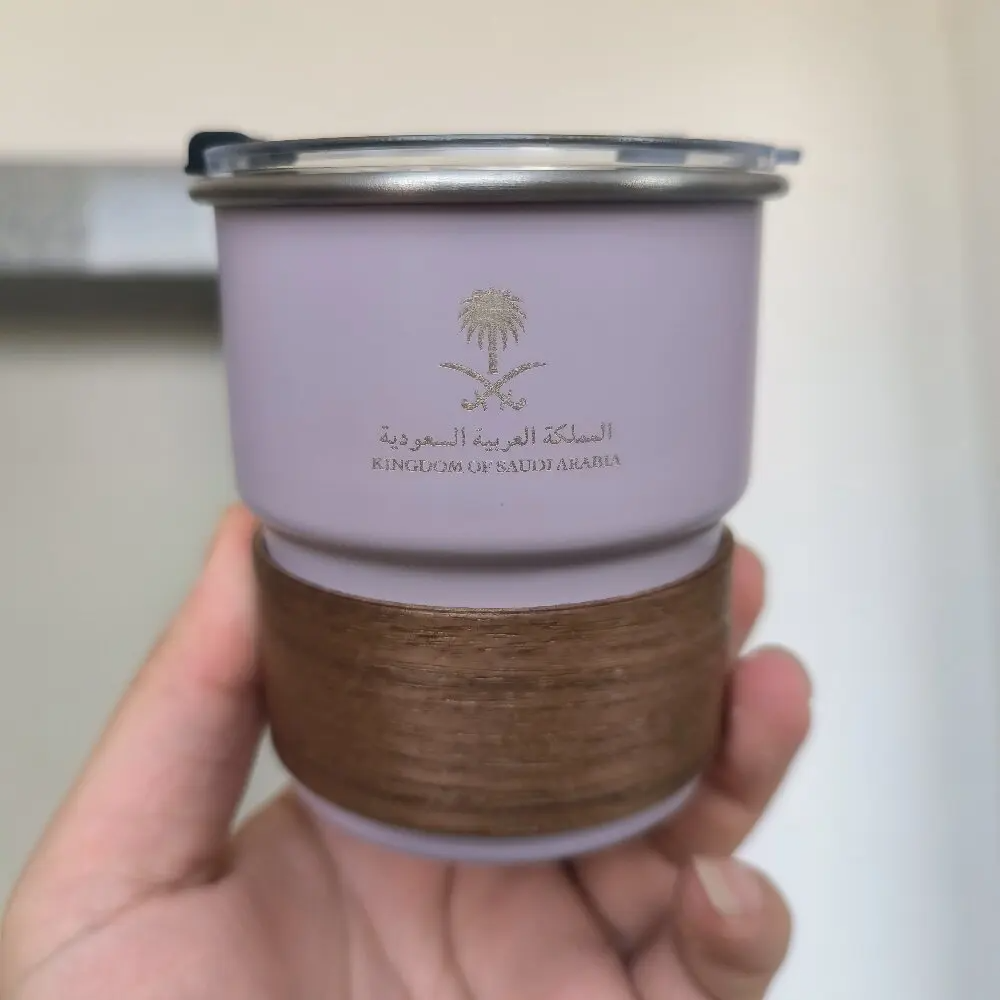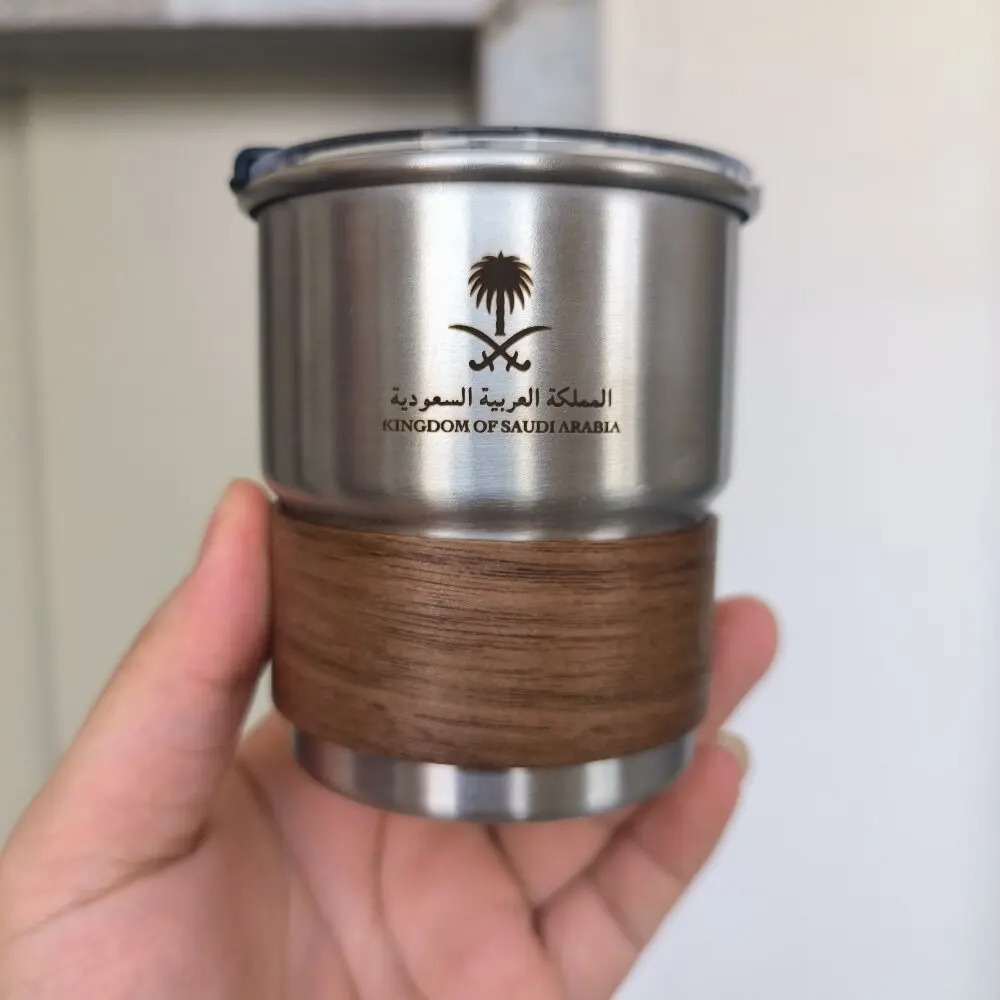 الشعار الوطني للسعودية ، كوب جديد من الفولاذ المقاوم للصدأ ، كوب بيرة بغطاء ، كوب قهوة للتخييم في الهواء الطلق ، خشب ، توي توي