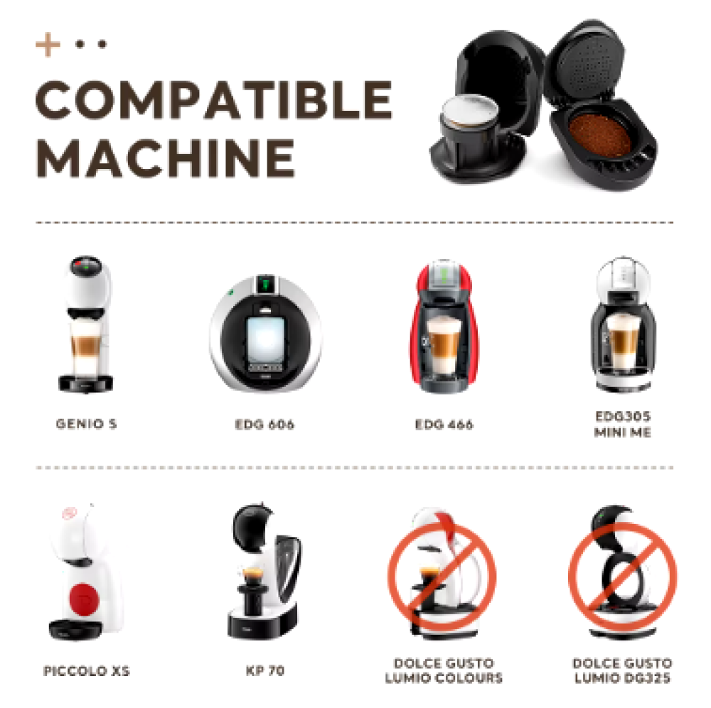 - مصمم خصيصًا ليتوافق مع ماكينات دولتشي غوستو، مثل جينيو S وبيكولو.